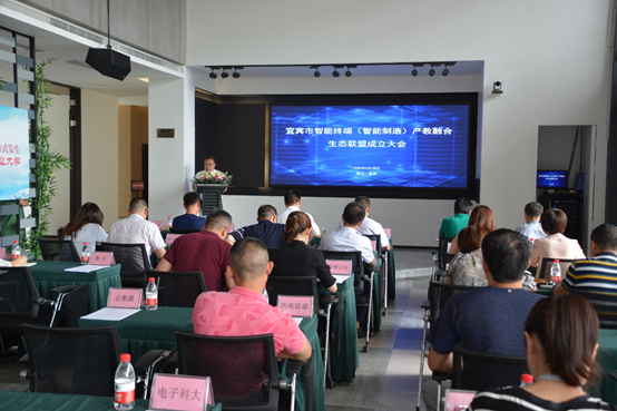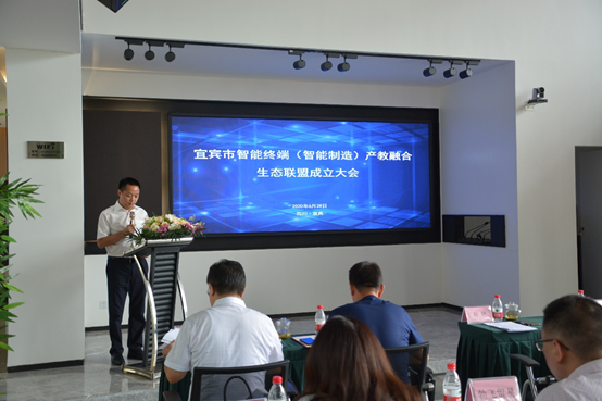 为助推宜宾市智能终端产业的发展,加强“政、产、行、企、校”深入交流合作,2020年06月28日,宜宾市智能终端(智能制造)产教融合生态联盟成立大会在宜宾市智能制造行业协会企业家之家召开。宜宾职业技术学院院长伍小兵、副院长张毅、市工业军民融合局局长杨炯副、电子科技大学宜宾研究院副院长陈波、宜宾市智能制造行业协会秘书长盛海明、宜宾职业技术学院电子信息与人工智能学院院长黄应强、临港经开区经济综合服务局处长罗洪超、临港经开区社事发展局处长黄满丽、临港经开区投资促进局副局长王柯、四川康佳智能终端科技有限公司、四川朵唯智能云谷有限公司、四川领歌智谷科技有限公司、宜宾市智威科技有限公司、四川苏格通讯技术有限公司、宜宾格莱特科技有限公司等20多家智能终端企业出席会议。