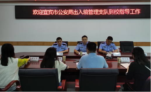 会上,黄天齐处长首先对宜宾市公安局出入境管理支队的到来表示欢迎,感谢出入境管理支队一直以来对我院外事管理工作的帮助和指导,并对我院留学生基本情况、留学生管理制度、留学生工作组织架构进行了详细介绍。