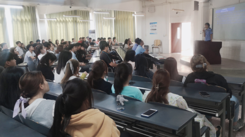 随后宜宾市公安局出入境管理支队民警蒋盈盈从留学居留许可申请、法律法规和相关案例分析、安全提醒三个方面对学院全体留学生开展了外国留学生出入境管理相关法律宣讲。