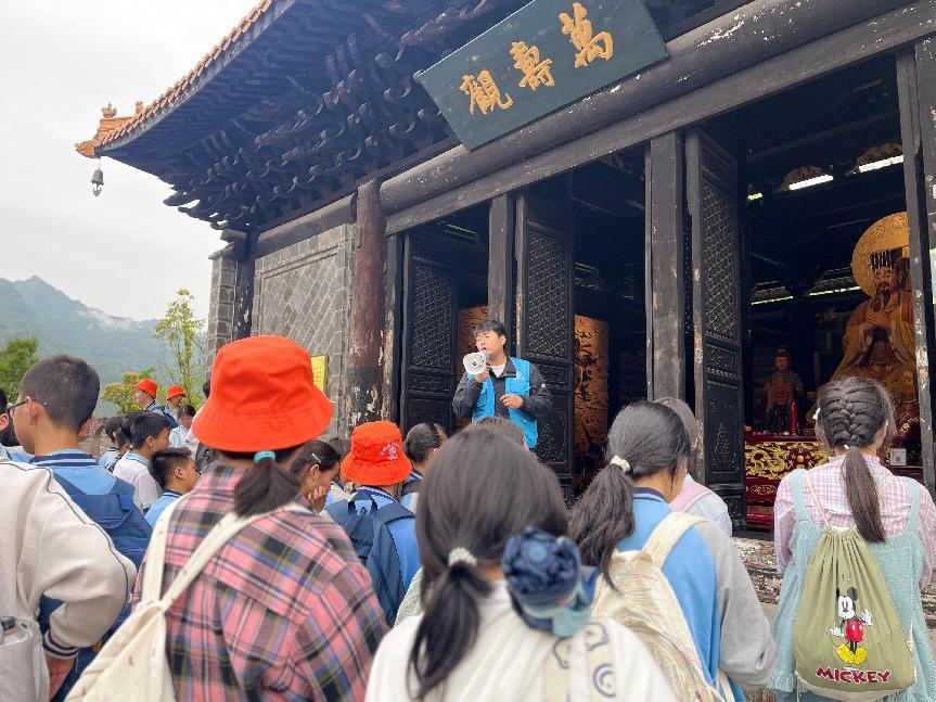 5月10日,人文与旅游学院旅游管理专业16名学生化身研学导师,带领宜宾市第四中学700余名初中生参加为期一天的马湖府古城研学活动,出色地完成了此次研学任务。