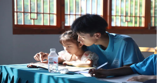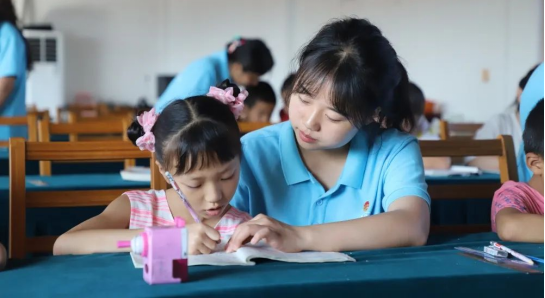 7月6日,“青马讲习”志愿服务队在“红领巾泽鸿学校”组织学生们观看《那年那兔那些事儿》红色动漫影片。
