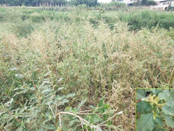 图五 刺苋侵占菜地且招来更多害虫
