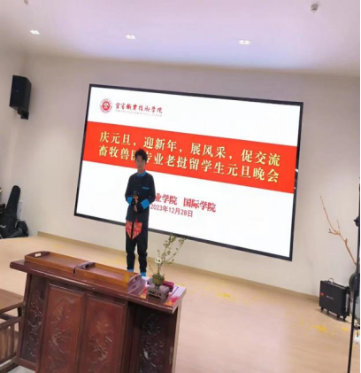 杨仕群在讲话中肯定了过去一年畜牧兽医专业老挝留学生取得的成绩与进步,表达了对老挝留学生新年的美好祝愿。