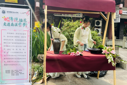 近日,宜宾职业技术学院文旅产业创新创业孵化中心传统插花工作室受邀前往南溪古街,参加“和美南溪·礼乐花朝”——宜宾市南溪区2024年古街景区第三届花朝节暨十二花神评选活动。作为国家级非遗项目,以花枝为材料的传统插花艺术展示了中华传统生活艺术的独特魅力,为古街花朝节增添了一抹亮色。