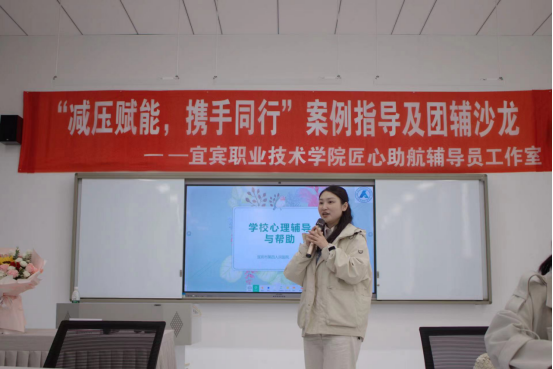 为全面加强和改进我院学生心理健康工作,强化辅导员心理辅导能力,提升学生心理健康素养,促进师生双方共同成长,4月10日,由宜宾职业技术学院主办,电子信息与人工智能学院匠心助航辅导员工作室承办的“减压赋能,携手同行”案例指导及团体辅导沙龙活动在凤凰楼109室拉开序幕。