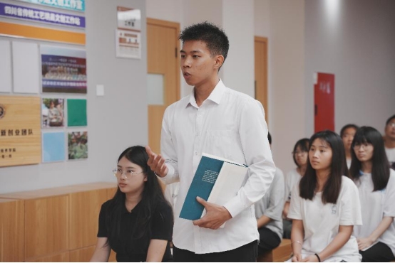 随后,来自人文与旅游学院的两位学生代表从不同的角度分享了自己在阅读《中国工艺美术史》一书后的深刻感悟。人力资源管理专业何静淼同学从书中雕塑艺术的角度分享了她的收获心得,她认为自己所学专业虽与雕塑工艺领域不同,但所蕴含的工匠精神是相通的,为自己耐心与专注力的培养、审美与艺术修养的提升、创造力与想象力的激发、成就感与自信心的建立等提供了深刻的启发。旅游管理专业李佳滨同学从书中刺绣工艺的角度分享了他的收获心得,他表示通过对刺绣工艺的学习思考,更加明确了自己在专业中的发展方向和责任,立志要将刺绣、雕刻、陶瓷等优秀传统工艺融入到专业服务中,为游客带来更富有文化内涵的旅行体验。