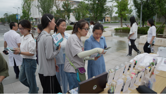 与此同时,学校在精钵广场上开展了现场宣传活动,设置了仿真毒品展示、有奖问答、HIV快速检测等互动环节。工作人员通过实物展示和案例讲解帮助师生识别新型毒品,疾控中心专业人员提供免费检测咨询服务,还通过现场趣味问答和宣传资料发放等形式普及禁毒防艾知识。