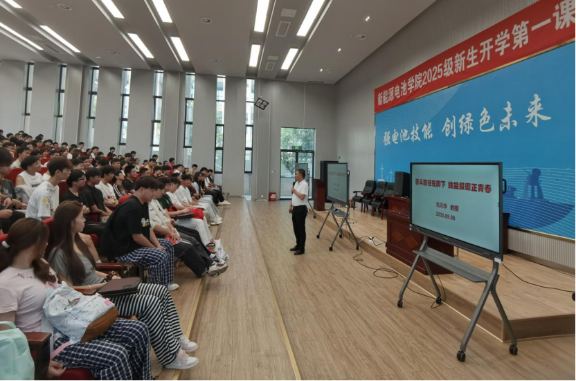 9月9日,宜宾职业技术学院新能源电池学院在燧火楼106阶梯教室隆重举行2025级新生开学第一课。学院党总支书记先元华教授、副院长陈泽华博士出席并授课,为新生带来了一场内容丰富、意义深远的入学教育课。