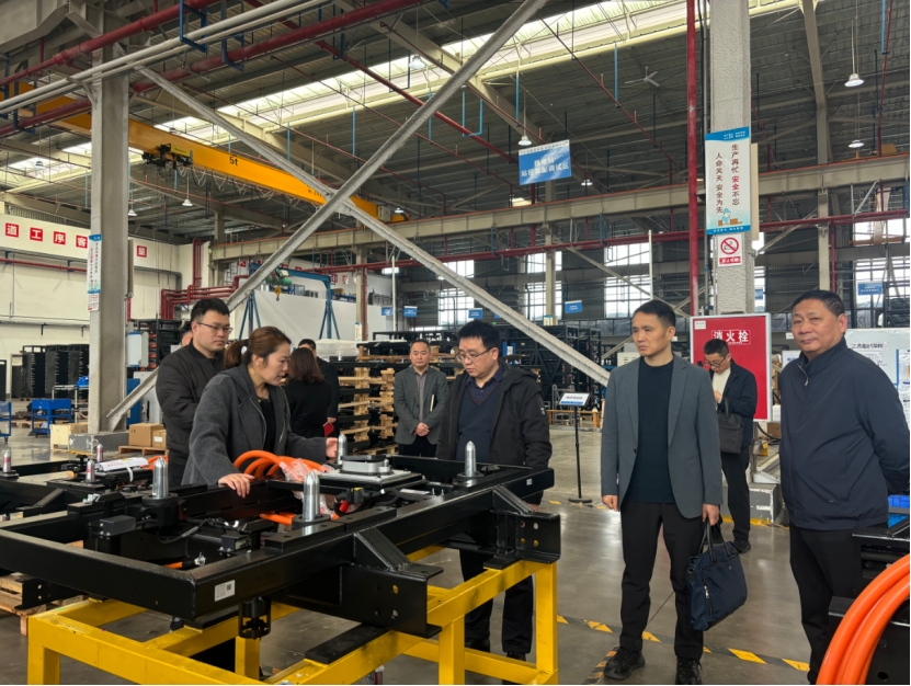 在公司总经理李艳青陪同下,张学尽一行实地考察了公司重卡换电项目车间,详细了解该项目筹备、场地建设、设备配套、教学场景等情况。