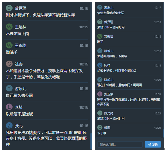 在直播中,老师们一边认真地听一边进行互动,谈谈自己的理解。通过本次培训,全体教职工充分借助信息技术平台,在家自主学习,有效提高了教职工疫情防控、个人防护意识及防控能力,为顺利开学做好了有力保障,也进一步提升了大家对疫情防控的重视程度,并将政府决策、防疫知识传递到耳里、家里、心里,形成全民防疫的强大合力。学院用行动为武汉加油!为中国加油!风雨同行,我们安危与共!