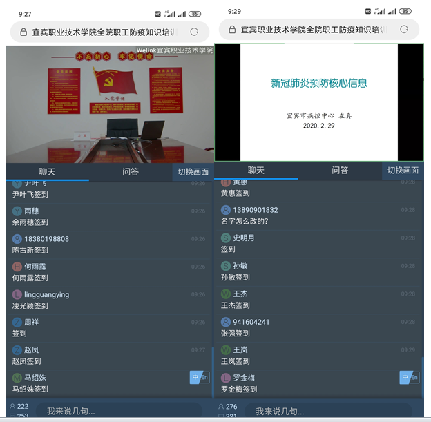 为进一步强化我院教职工疫情防控意识,提升自我防控能力,确保因工作需要返校教职工的生命安全和身体健康,按照学院安排,在华为WeLink平台的支持下,联合宜宾市疾控中心开展的“新冠肺炎预防核心知识宣讲”直播于2月29日上午9:30准时开播,一堂别开生面的网络直播课,成为学院抗击新冠肺炎的“新武器”。此次宣讲的目的是为全院教师普及防疫常识,解读权威部门发布的疫情信息。