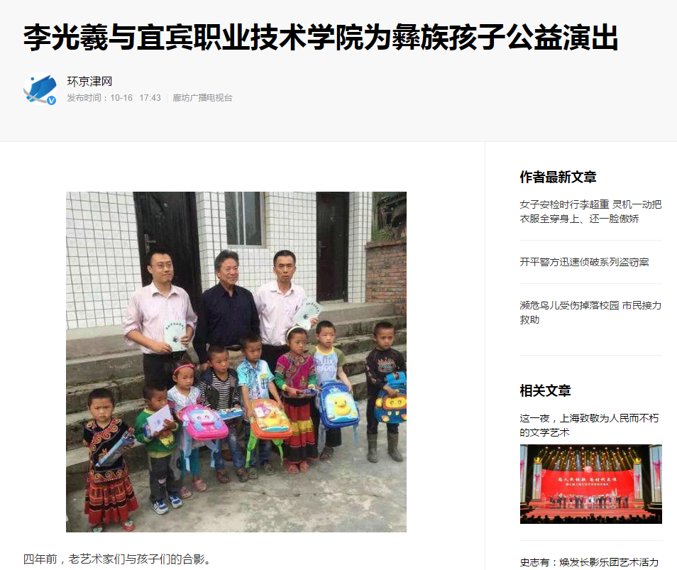 上一条:李光羲参与教育扶贫,为彝族孩子公益演出,与万名学子同唱经典(环京津网) 下一条:传统文化进校园、携手奋进新时代——李光羲等老一辈艺术家相聚我院公益义演