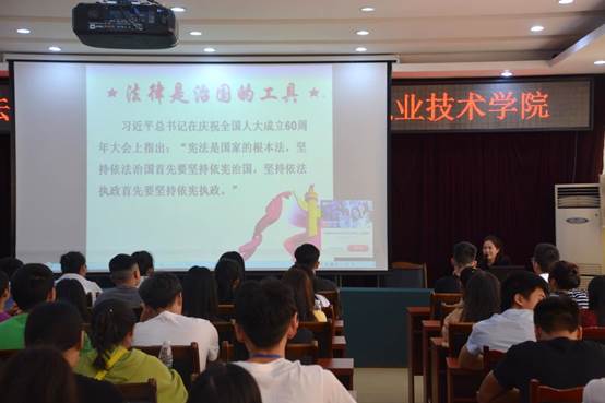 为全面贯彻中央、省委关于宪法法律学习宣传教育和高校意识形态工作的安排部署,认真落实全省高校宪法法律学习宣传教育活动,9月27日下午,我院在科苑宾馆三楼大会议室开展了“宪法法律进高校”大讲堂宣讲活动。本次活动按宜宾市司法局、宜宾市教育和体育局安排,特邀我院宣传部副部长刘吉梅教授作“学习宪法知识,弘扬宪法精神”的主题讲座,全院100多名同学聆听了此次讲座。