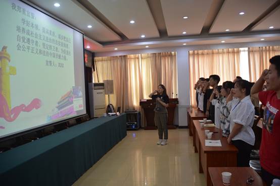 讲座最后,刘教授带领同学们一起向宪法宣誓,洪亮且郑重的誓言,表达着同学们对宪法的尊崇、对法治的信仰,激励着同学们牢记自己肩负的责任,砥砺前行,在未来的道路上依宪而行。(学保团供稿)