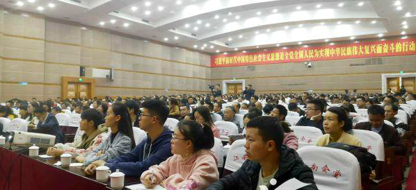 报告会由宜宾职业技术学院党委书记林世全主持。该院干部、教师及学生代表500余人参加报告会。