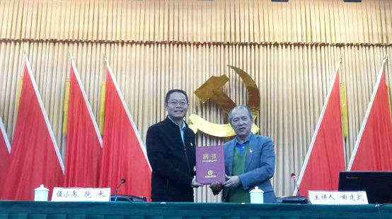 报告会开始前,宜宾职业技术学院院长伍小兵向曲建武教授颁发了“特聘教授”聘书。