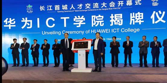 典礼上,在宜宾市委、市政府的坚强领导和全力支持下,在诸多知名教育专家和行业专家共同见证下,学院与华为技术有限公司签署关于共建华为信息与网络技术学院(以下简称“华为ICT学院”)的合作协议并进行了揭牌。伍小兵同志和华为技术有限公司川藏代表处企业业务副总经理张月川分别代表学校和公司进行了签约和揭牌,这标志着宜宾职业技术学院正式进入华为ICT生态体系,与华为公司共同推动ICT人才生态链建设和人才培养。