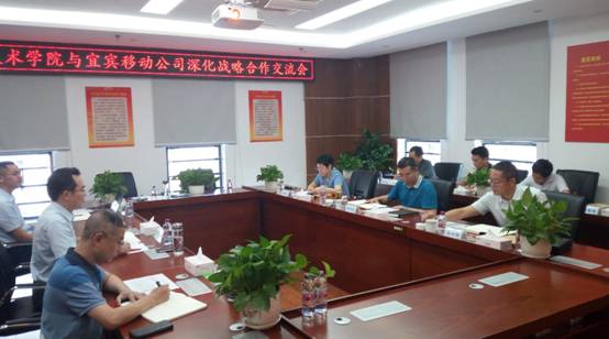 交流会前合作双方共同参观了宜宾移动信息化展厅,学院副院长闫景丽和宜宾移动副总经理包韬在交流会上分别就双方在教育管理、教学、川南数字图书馆建设、校园5G示范和校园宽带等方面的合作需求进行了交流。