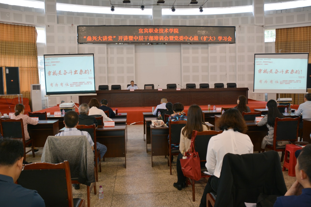 4月16日至17日,“鼎兴大讲堂”授课暨中层干部培训会暨党委中心组(扩大)学习会在学院B区学生活动中心举行,对学院副科级以上干部,学院“鼎兴”班一期学员以及赴发改委锻炼的一批、二批教师开展为期两天的集中培训。院领导林世全、伍小兵、陈林、张毅、古文伟、闫景丽、周黎军、江仁朝参加会议。