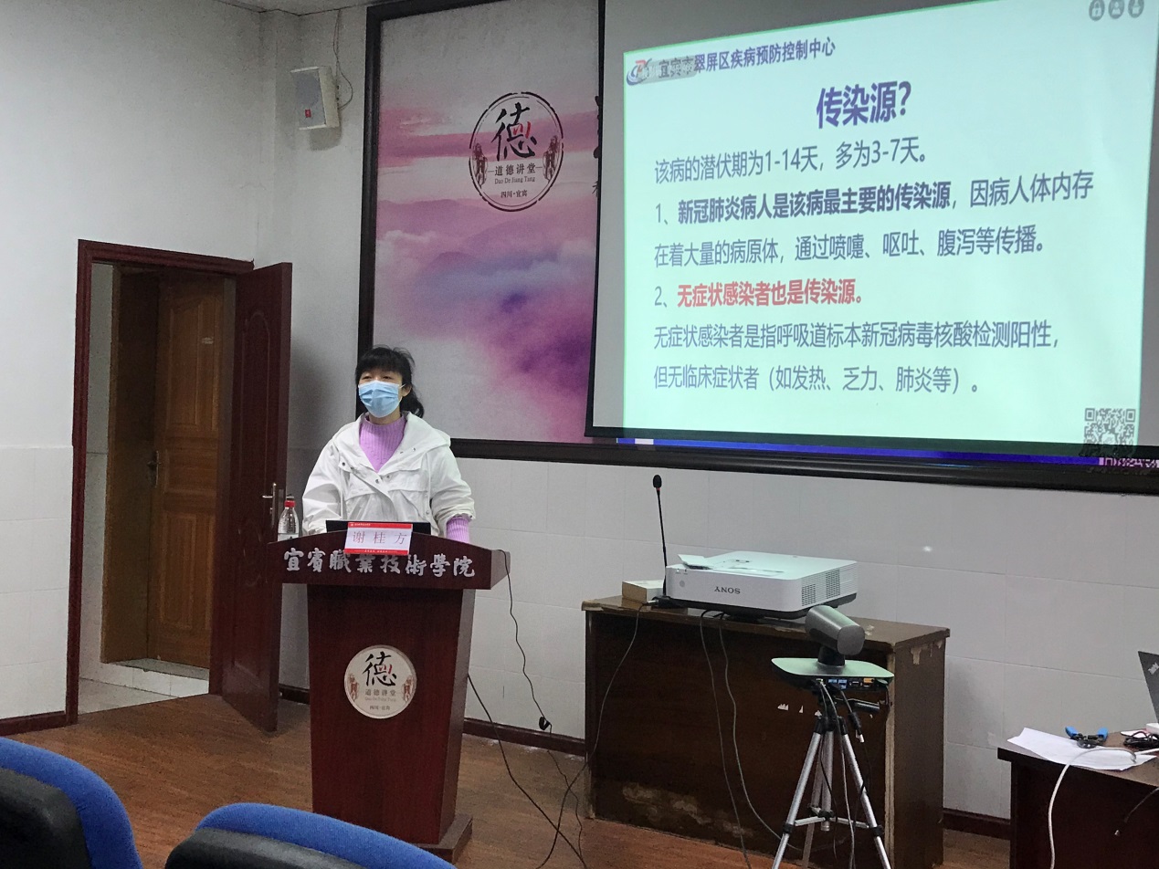 培训会由翠屏区疾控中心专家谢桂方主讲。她围绕学校如何做好新冠肺炎防控、学校食品卫生、安全管理内容;境外输入疫情防控要点;无症状感染者防治管理要点;复工复产复学指导中发现的主要问题以及春季传染病防控要点等开展了培训。针对新冠肺炎病毒的病理、传播途径、校园环境消毒、疫情期间如何正确护眼、校园卫生保健、学校食堂管理等内容进行了专项宣讲,并现场答疑。培训结束后,对现场接受培训的教职工进行了考试,考核合格的教职工将获颁《四川省新冠肺炎疫情防控卫生员培训合格证书》。