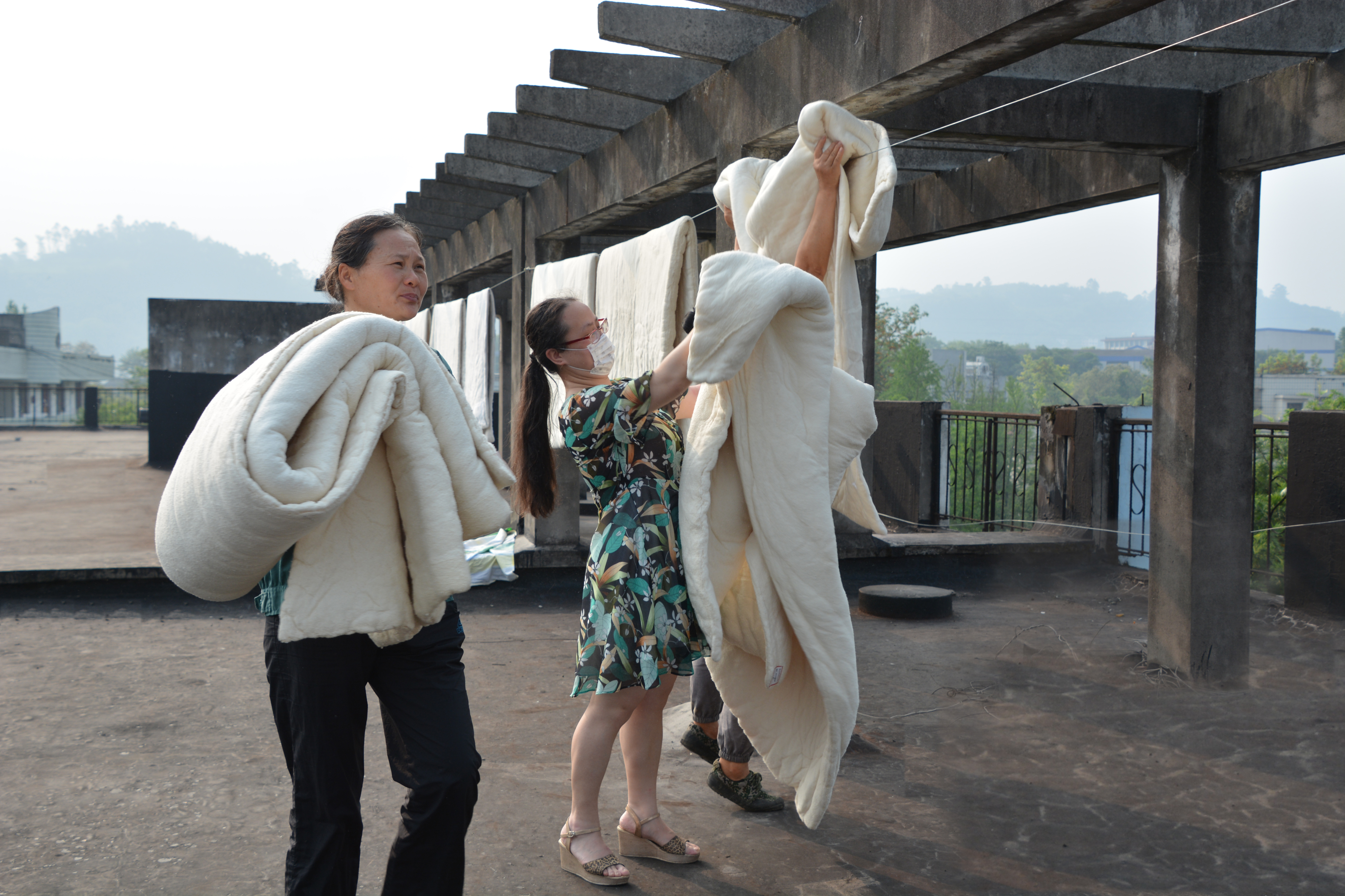信息发布后,学院相关部门、二级学院精心组织策划,各司其职,根据线上同学们的申请,线上认真接单,线下做好各项准备工作。为了让同学们能盖上有阳光味道的被子,只要天气允许,学院就会晒下去直到同学们返校。
