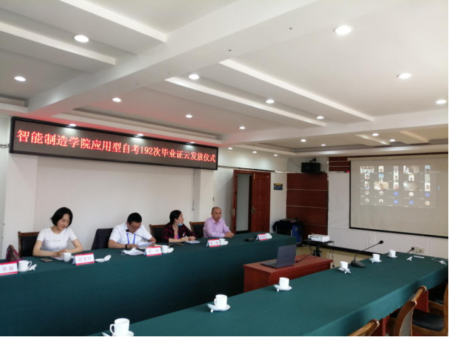 5月28日,智能制造学院应用型自考192次“云毕业典礼”在学院科苑宾馆三楼小会议室,以腾讯视频会议的特殊方式进行。智能制造学院院长陈琪,党总支书记李恩田,智能制造学院应用型自考工作人员,及全体192次自考毕业生参加了本次应用型自考毕业证书“云发放仪式”。本次会议由智能制造学院副院长曾欣主持。