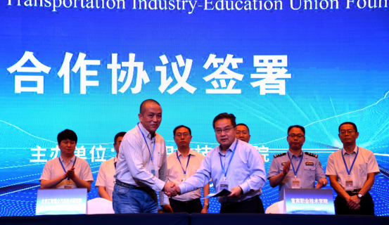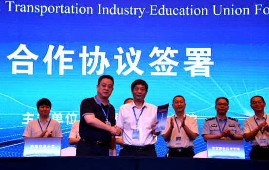 会上,宜宾职业技术学院与西南交通大学共同签署校校战略合作协议;宜宾职业技术学院与北京汇智慧众汽车技术研究院、四川川南轨道交通运营有限公司共同签署校企产教融合战略合作协议。