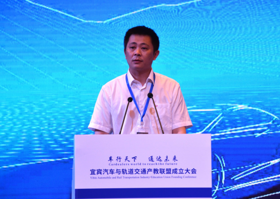 为助推宜宾市“8+2”产业中汽车与轨道交通产业的发展,加强“政、产、行、企、校”深入交流合作,6月9日上午,以“车行天下 通达未来”为主题的“宜宾汽车与轨道交通产教联盟”成立大会在宜宾市城市名人酒店召开。四川省汽车产业协会秘书长郝世强,四川川南轨道交通运营有限公司董事长张瑞英,宜宾市工业和军民融合局副局长胡书春,宜宾市教育和体育局副局长郎红,宜宾市交警支队副支队长刘华,西南交通大学教授阎开印、王长林,西华大学西华学院院长张勤勇,宜宾凯翼汽车有限公司副总经理曹阳天,宜宾丰川动力科技有限公司总经理陈红旭,宜宾职业技术学院党委书记林世全、院长伍小兵出席会议。