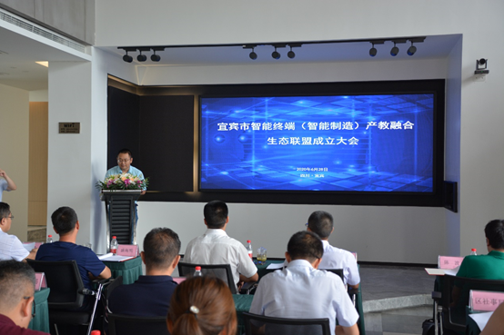 为助推宜宾市智能终端产业的发展,加强“政、产、行、企、校”深入交流合作,2020年06月28日,宜宾市智能终端(智能制造)产教融合生态联盟成立大会在宜宾市智能制造行业协会企业家之家召开。宜宾职业技术学院院长伍小兵、副院长张毅、市工业军民融合局局长杨炯副、电子科技大学宜宾研究院副院长陈波、宜宾市智能制造行业协会秘书长盛海明、宜宾职业技术学院电子信息与人工智能学院院长黄应强、临港经开区经济综合服务局处长罗洪超、临港经开区社事发展局处长黄满丽、临港经开区投资促进局副局长王柯、四川康佳智能终端科技有限公司、四川朵唯智能云谷有限公司、四川领歌智谷科技有限公司、宜宾市智威科技有限公司、四川苏格通讯技术有限公司、宜宾格莱特科技有限公司等20多家智能终端企业出席会议。