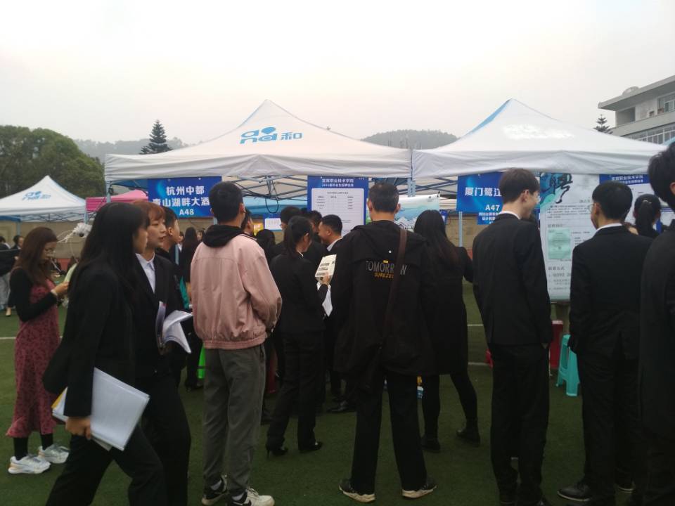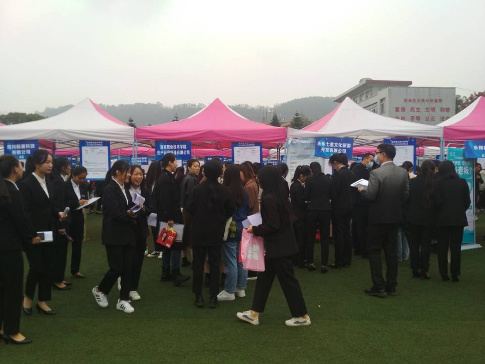 10月30日,金风送爽,天朗气清。上午8点半,宜宾职业技术学院A1区运动场上人山人海,热闹非凡,2021届毕业生就业专周招聘会第四场文管类招聘会闪亮登场。