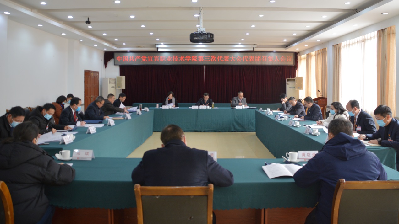 1月11日下午14:00,中国共产党宜宾职业技术学院第三次代表大会举行代表团召集人会议。学院党委书记林世全,党委副书记、院长伍小兵,党委副书记、纪委书记陈林,党委委员、副院长古文伟、闫景丽、江仁朝、王志刚,党委委员、组织部部长陈三军,各代表团召集人、筹备领导小组成员出席会议。会议由林世全主持。