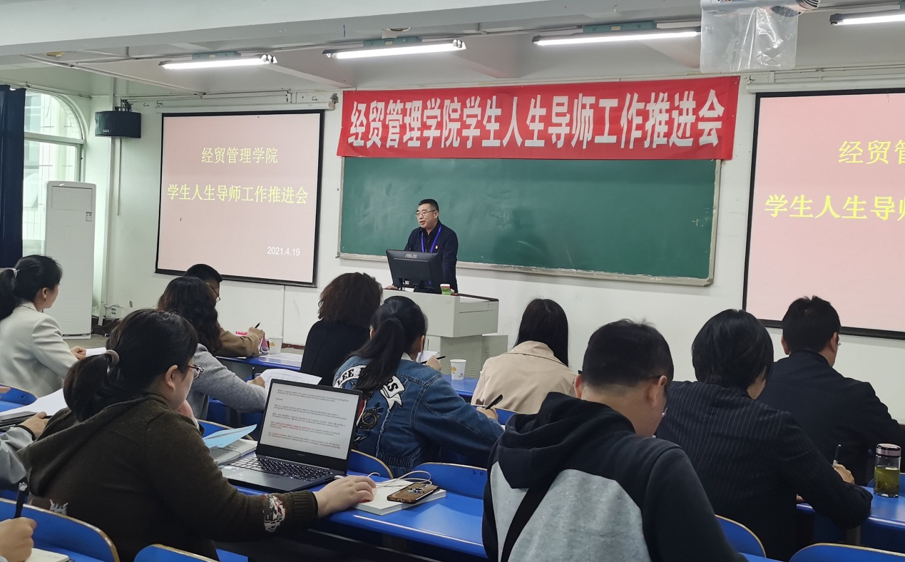 自《宜宾职业技术学院学生人生导师制实施办法》发布以来,各二级学院迅速结合自身工作特点,认真落实学生人生导师制。近日,经贸管理学院召开了学生人生导师工作推进会,担任经贸管理学院班级学生人生导师的学院党委书记林世全在会上进一步强调学院实施学生人生导师的目的意义,向师生阐述了学生人生导师“为什么、做什么、怎么做”三个方面的内容,并以他的亲身经历及对老师的感恩之情、崇敬之心,告诉教师要真正为国家培养有理想、有抱负有作为的年轻一代,作为教师,不止上好45分钟课,更要做到真正走进学生的心坎里。林世全书记强调人生导师要用爱心和真诚引导学生树立正确的三观,并把育人工作当成一种享受而不是负担,正确处理好导师与专辅及下班党员的关系、导师与学生的关系、育人与成才之间的关系,加强协作形成合力,让“三全育人”取得实实在在的成效。