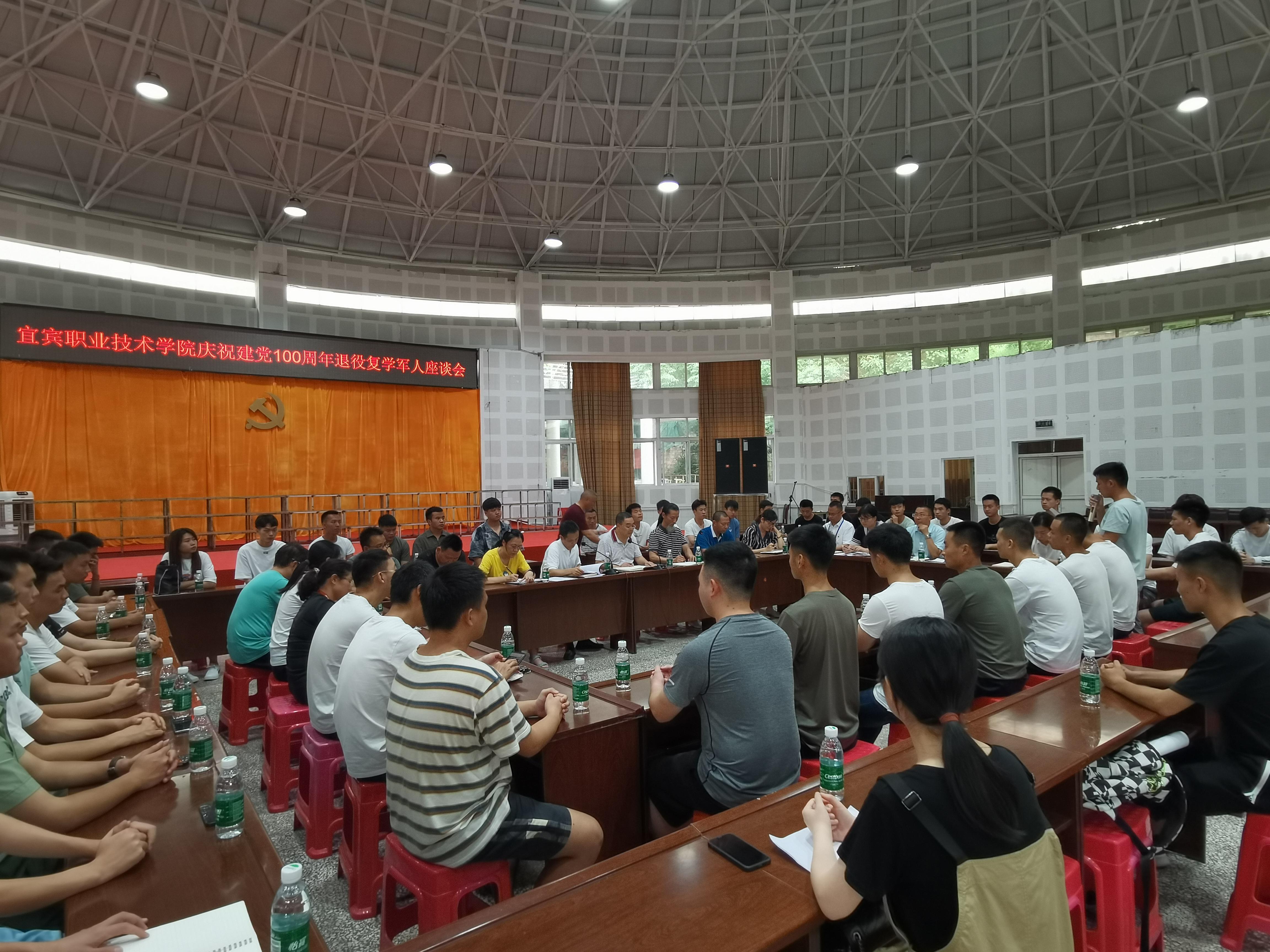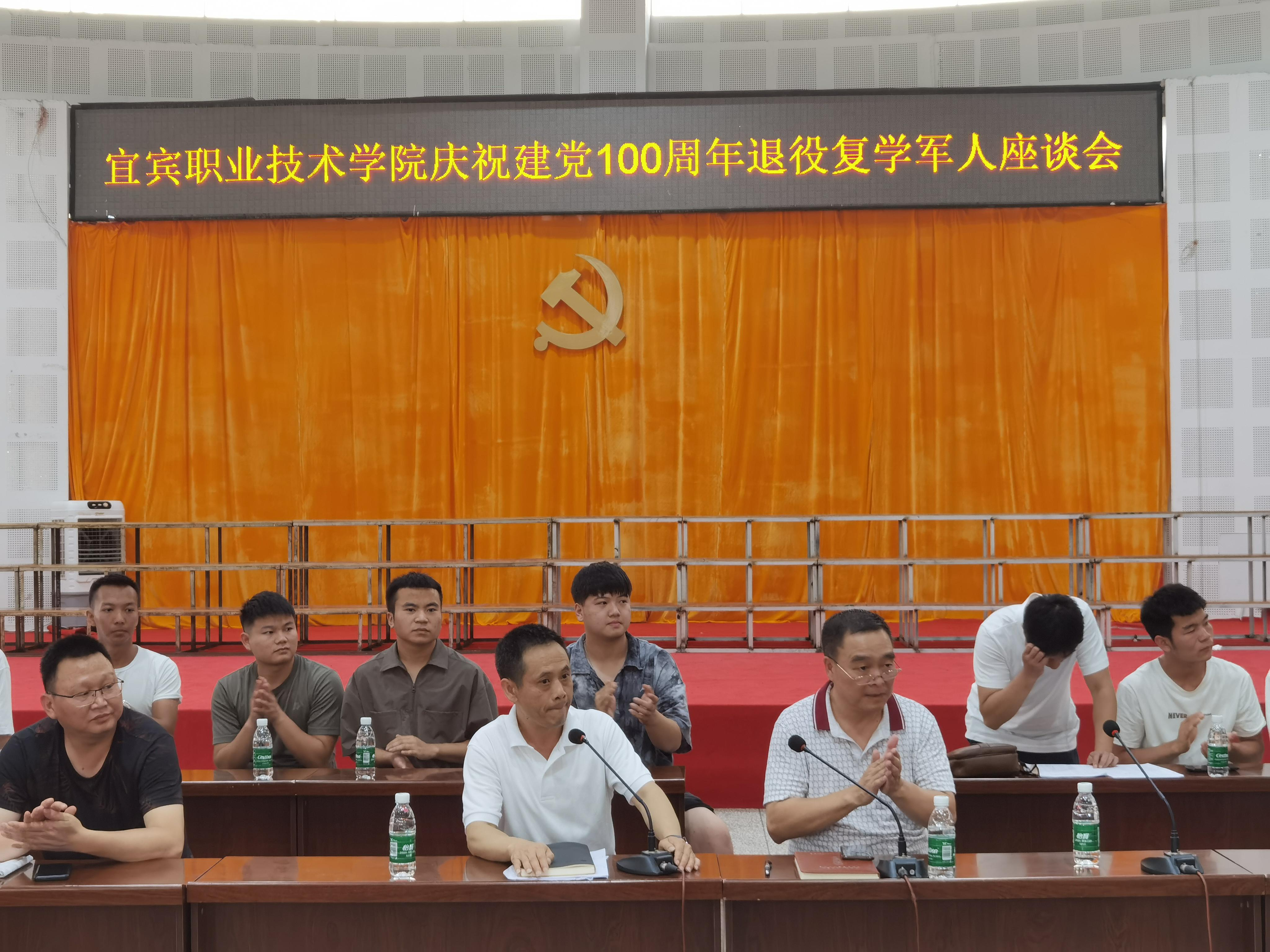在举国欢庆建党一百周年之际,为深入学习贯彻习近平总书记关于党的历史的重要论述和习近平总书记给四川省革命伤残军人休养院全体同志的重要回信精神,抓实落地《中共宜宾市委退役军人事务工作领导小组办公室关于转发<中共四川省委退役军人事务工作领导小组关于开展“把党的关爱送到老兵心中”暖心行动的通知>(川委退役军人〔2021〕3号)的通知》(宜委退役军人办发〔2021〕9号)要求,2021年6月28日下午4时50分、6月29日上午10时,我院分别组织退役复学士兵91人、退役军人教职工41人,在B区活动中心、A1区科苑宾馆三楼召开了两场以“把党的关爱送到老兵心中”为主题的慰问座谈会,大家共聚一堂,同庆百年华诞。学院党委常委、副院长江仁朝,党委常委、组织部部长陈三军分别出席退役复学军人座谈会和退役军人教职工座谈会并讲话。座谈会由安全保卫部部长李强主持。