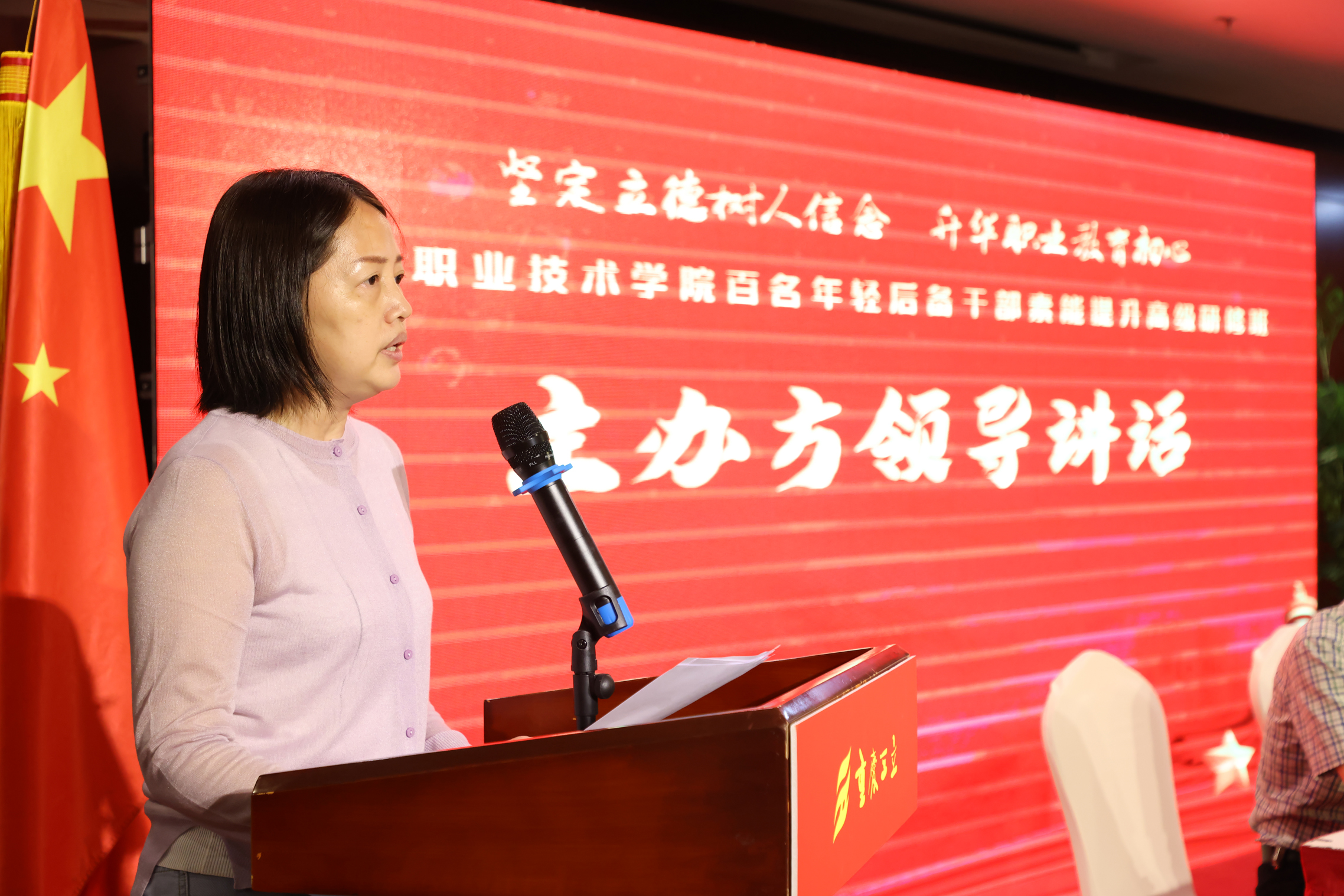陈林在开训讲话中首先对重庆三立职业培训学校表示衷心的感谢,同时强调了本次培训的目的和意义,并对全体参训人员提出“三个三”的要求:一是“三个转变”——从工作到学习的转变,从干部、教师到学生的转变,家庭生活到学校生活的转变;二是“三个学出”——学出信念和情怀,学出本领和担当,学出纪律和规矩;三是“三个纪律”——严守政治纪律、学习纪律、生活纪律。她强调,全体参训学员一定要坚持以习近平新时代中国特色社会主义思想为指引,以“三个转变”为前提,以“三个学出”为任务,以“三个纪律”为保障,高标准、严要求地完成好本次培训任务,为学院高质量建设和发展贡献更多更大的力量。