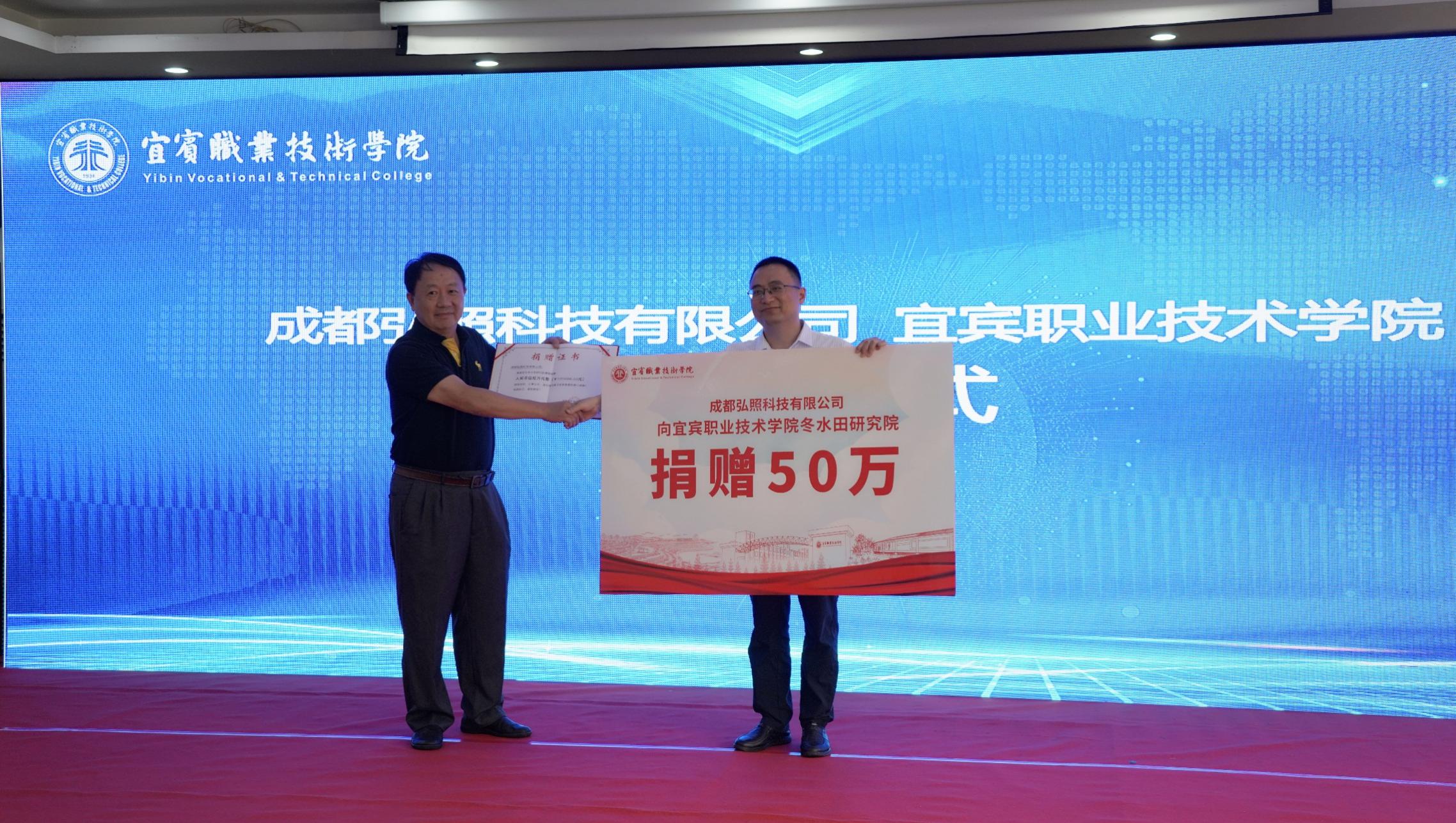 成立仪式上,成都弘照科技有限公司总经理舒嘉向宜宾职业技术学院冬水田研究院捐赠研究经费50万。学院领导班子成员,相关部门和二级学院负责人参加成立仪式。