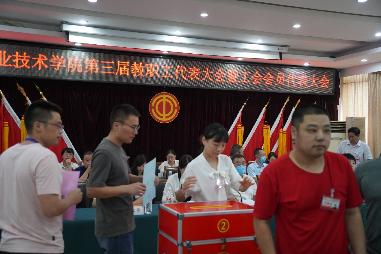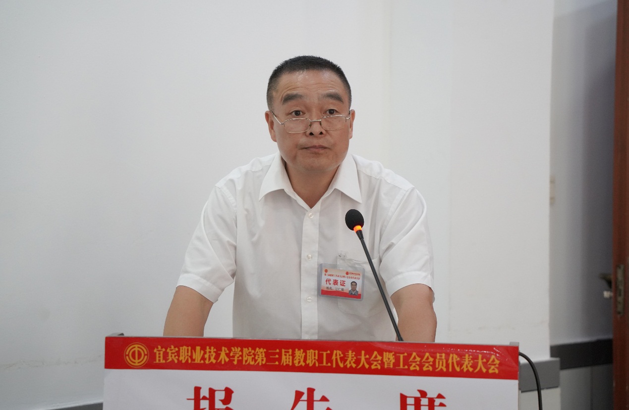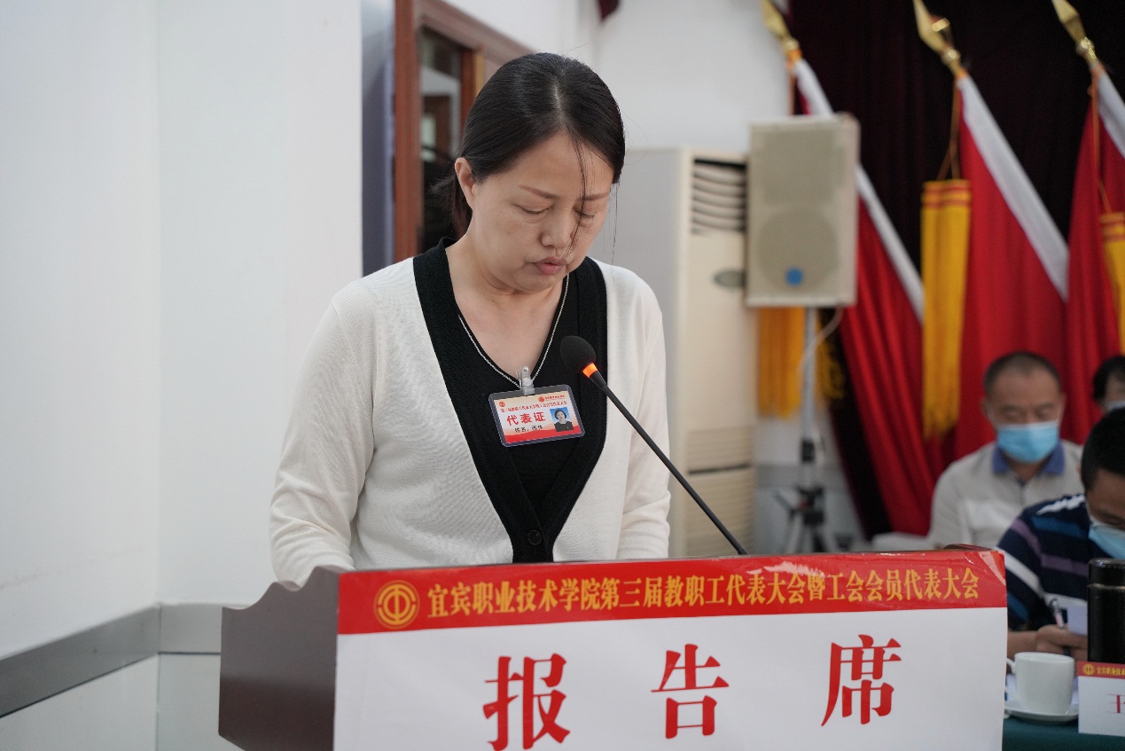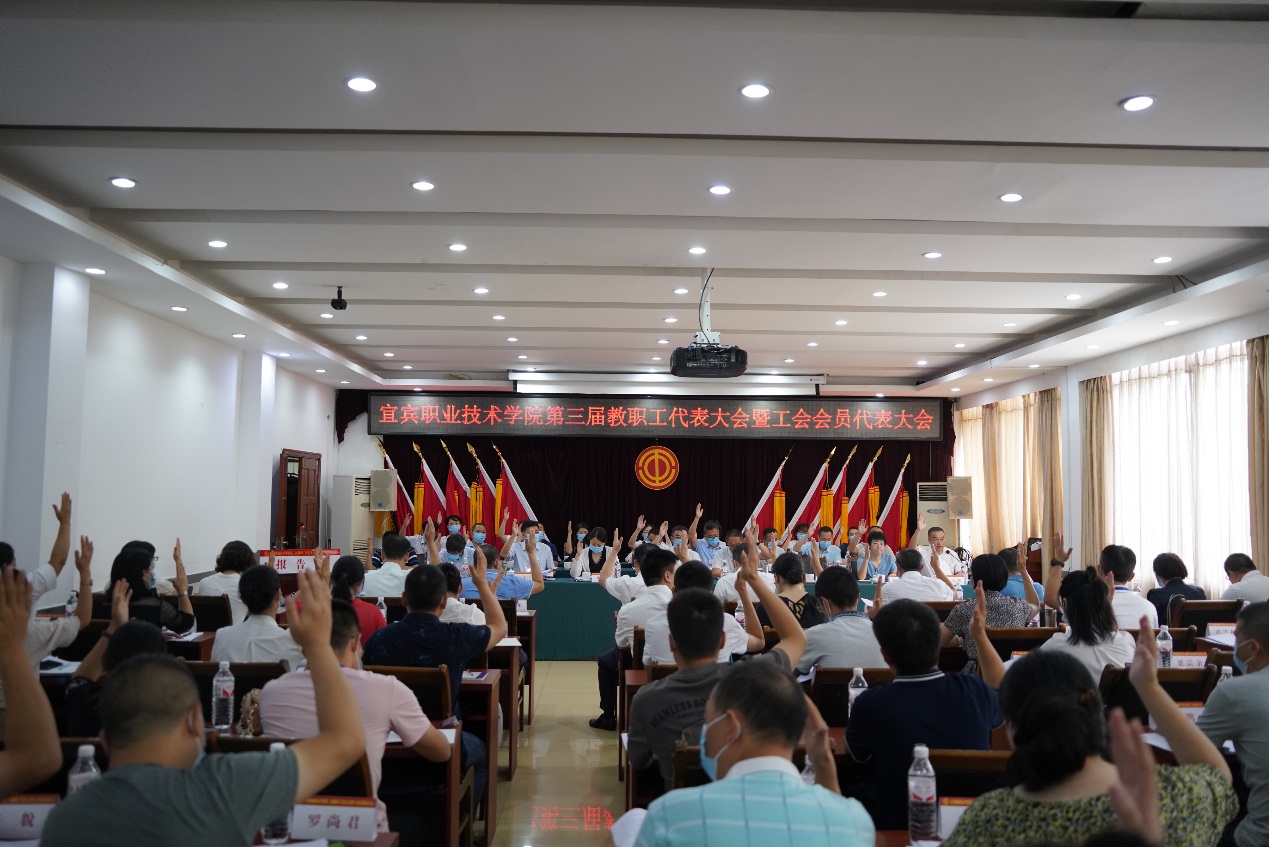 在下午的闭幕式上,所有与会正式代表以无记名投票方式,高票通过《宜宾职业技术学院2021年新增绩效分配方案》《关于宜宾职业技术学院整体调迁宜宾国际高职园》《关于宜宾职业技术学院教职工住房保障工作方案》等三个事关学院发展的重大事项。差额选举产生了第三届工会委员会(教代会执委会)、工会经费审查委员会、工会女职工委员会和教代会提案委员会委员;以举手表决方式通过《学院行政工作报告决议》《工会工作报告决议》《2011至2020年预算执行情况和2021年预算草案的报告决议》《工会经费审查委员会工作报告决议》等决议。