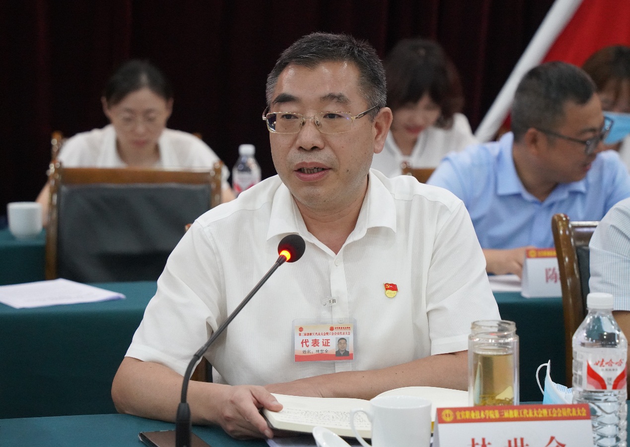 会议即将结束前,党委书记林世全做了重要讲话,林世全指出教代会、工代会是学院治理体系重要的组成部分,经过全体代表和与会同志的共同努力,学院第三届教职工代表大会暨工会会员代表大会圆满完成既定议程胜利闭幕。