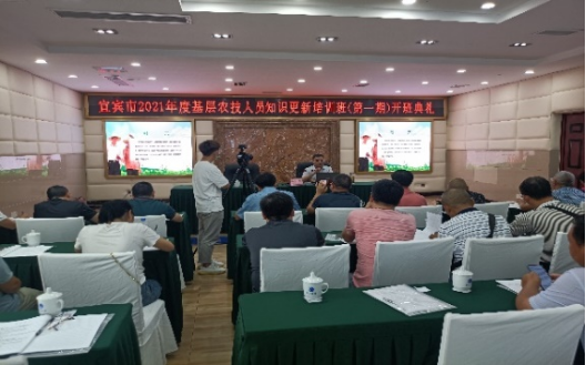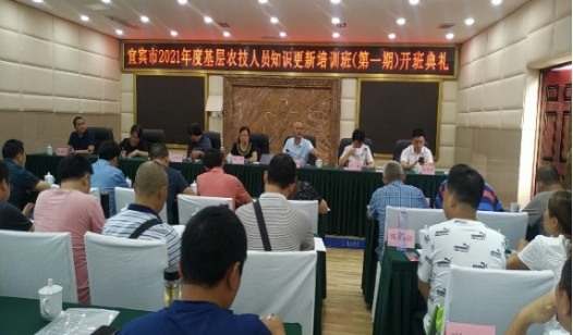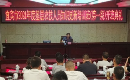 由宜宾市农业农村局主办、宜宾职业技术学院承办的“宜宾市2021年度基层农技人员知识更新培训”首期培训班于2020年9月25日在叙州区蓝天宾馆举行开班典礼。参加开班典礼的有宜宾市农业农村局分管领导三级调研员肖平、宜宾职业技术学院副院长周黎军、宜宾市农业农村局科教与服务体系建设科科长张等树、宜宾职业技术学院五粮液技术与食品工程学院院长卢琳等。开班典礼由宜宾职业技术学院科技与社会服务处处长、继续教育学院院长刘雪梅主持。