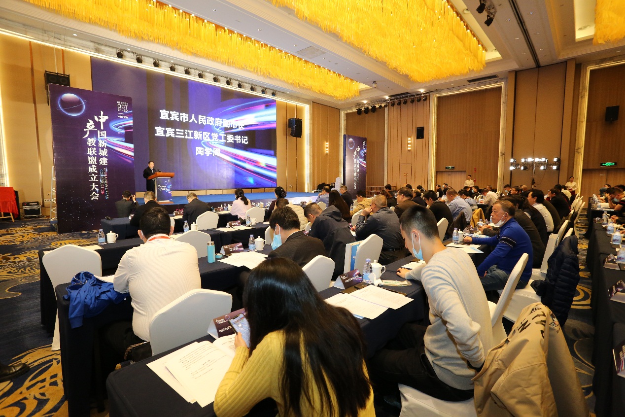 10月22日,中国新城建产教联盟成立大会在城市名人酒店举行。中国建设监理协会会长王早生、全国智能建筑及居住区数字化标准化技术委员会副秘书长李均华、市政府副市长陶学周、院党委书记林世全出席大会,省内外50余名专家学者与宜宾市企业家共聚一堂,共同见证了中国新城建产教联盟成立盛况。会议由院党委副书记、院长伍小兵主持。