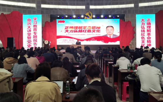 为深入学习贯彻习近平新时代中国特色社会主义思想,全面落实习近平总书记“七一”重要讲话精神,扎实开展党史学习教育,强化革命精神研究和红色文化传承,从党的百年伟大奋斗历程中汲取继续前进的智慧和力量,提升全院教师爱党爱国热情,增强光荣感、责任感和使命感,引导党员干部强化理论思维、坚定信仰信念、牢记初心使命、提高能力本领,进一步提升我院思想政治质量,推进职教鼎兴,助力学院新一轮高质量发展。2021年10月25日下午,学院组织开展“鼎兴大讲堂”暨党史学习教育专题报告会,邀请全国知名红色文化研究专家、浙江理工大学渠长根教授到校开展专题辅导。
