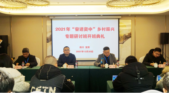2021年12月20日上午,在宜宾市凯尔顿国际酒店四楼举行了“2021年‘奋进资中’乡村振兴专题研讨班”开班典礼。资中县乡村振兴局乡村振兴服务中心主任陈圆,资中县县委组织部廖远,宜宾职业技术学院副院长朱涛,宜宾职业技术学院技术技能培训中心副主任李德立,以及全体学员出席开班典礼,李德立主持会议。