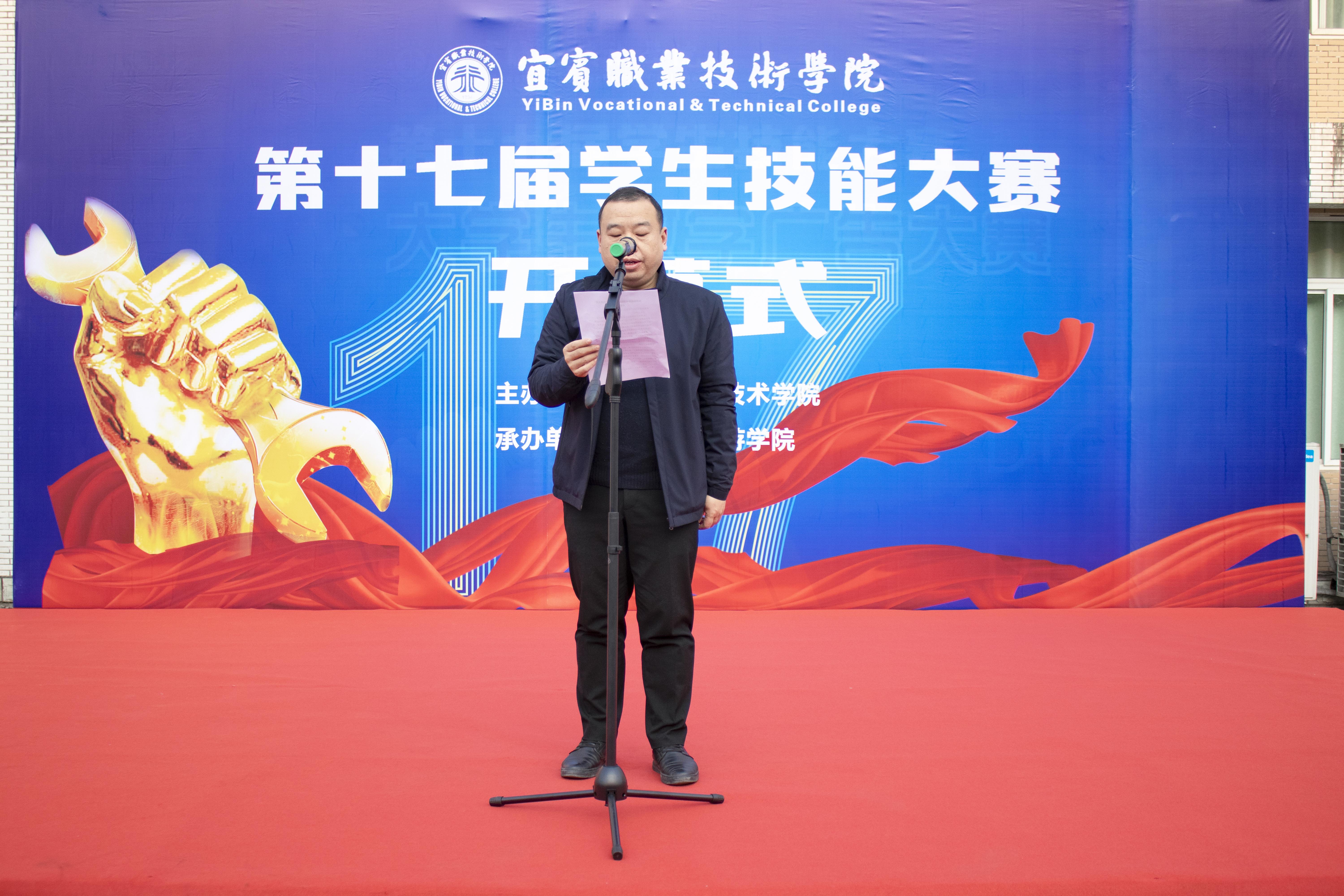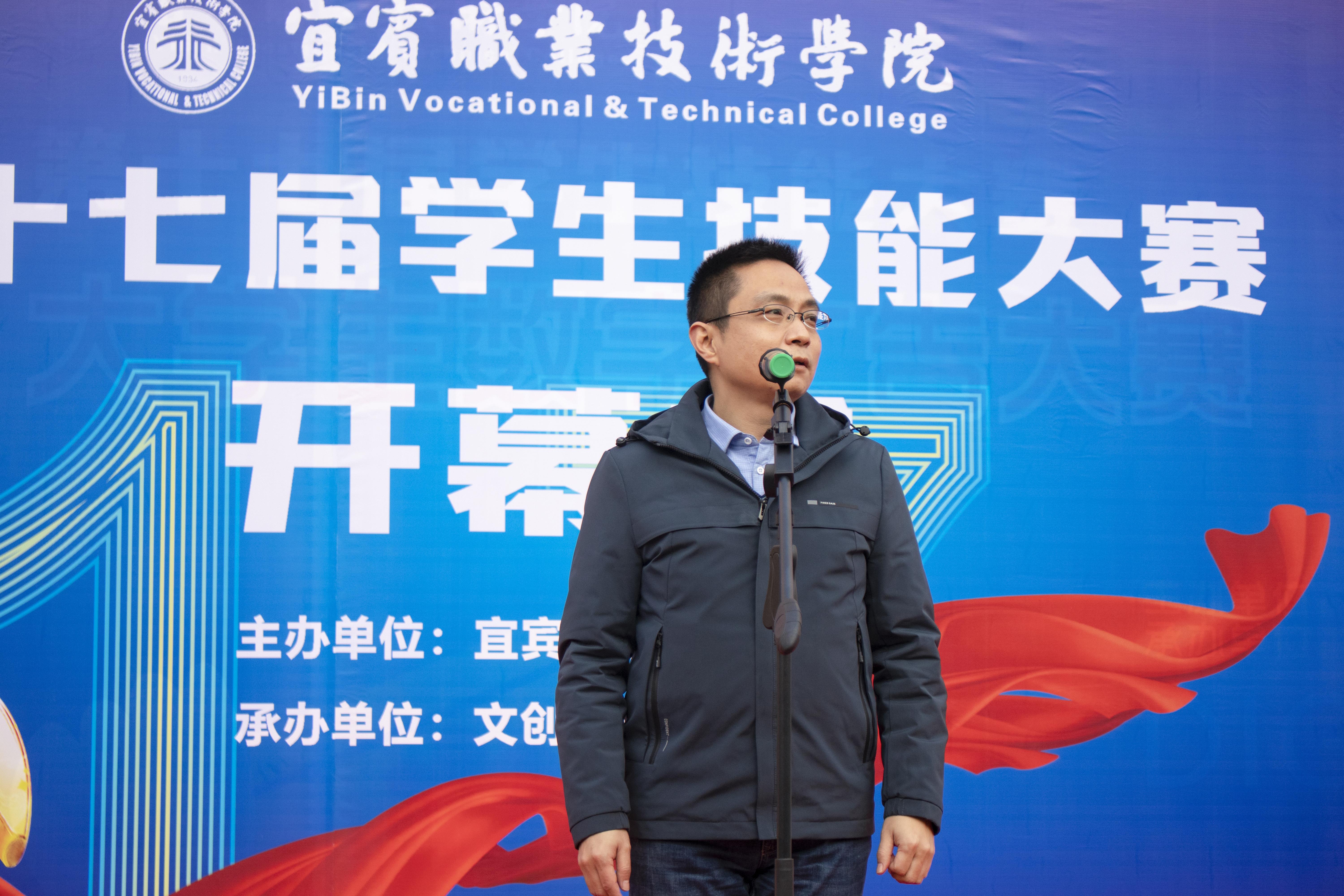 为深入贯彻落实习近平总书记对技能人才工作的系列重要指示精神,检验“岗课赛证”综合育人成效,12月20日上午,宜宾职业技术学院第十七届学生技能大赛开幕式在A1区教学楼广场举行。宜宾市文化旅游协会副秘书长韩树江、宜宾文传哪吒影视文化有限公司副总经理王淼,西华大学美术与设计学院相关代表,院党委常委、副院长王志刚,教学管理与质量处处长王赛以及各二级学院相关领导等出席了本次开幕式。