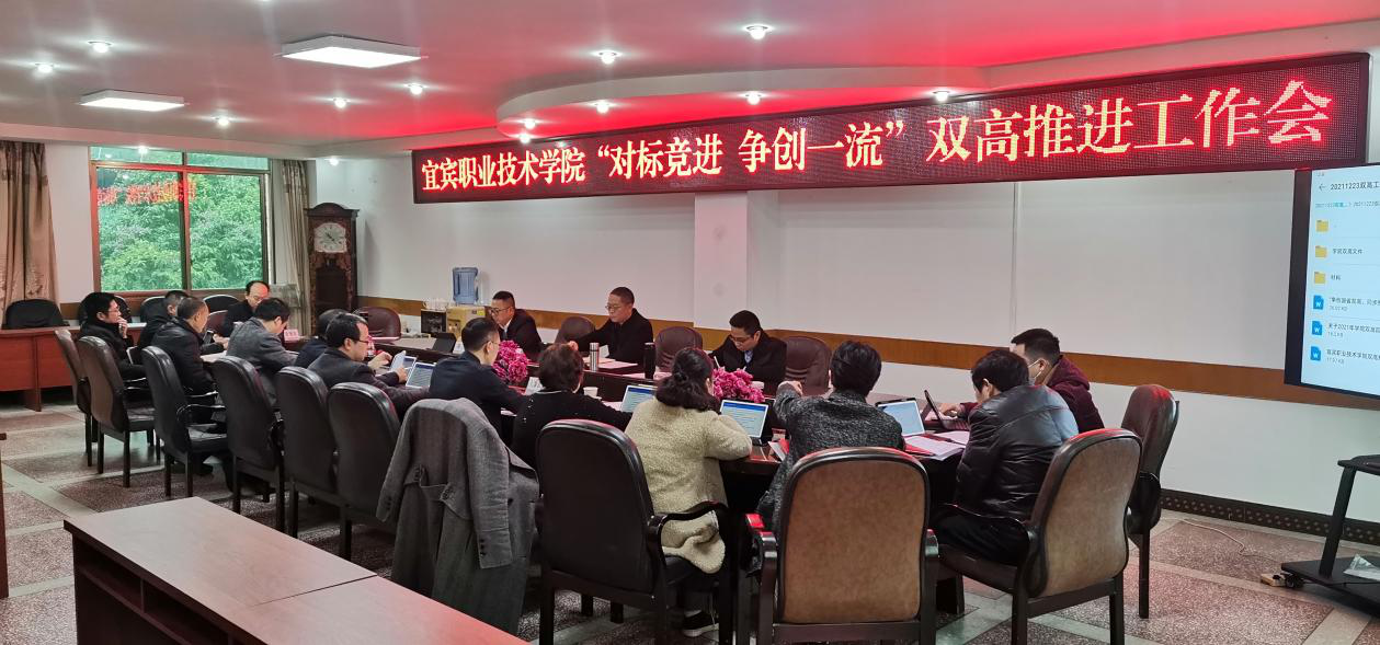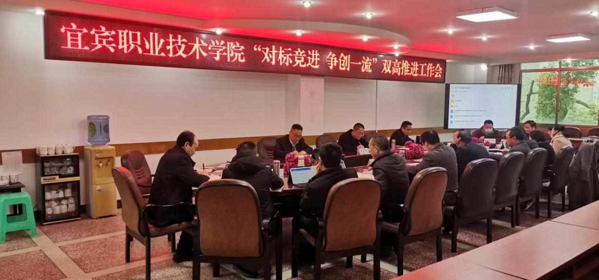 宜宾职业技术学院“对标竞进 争创一流”双高工作推进会议于12月23日上午召开。学院党委副书记、院长伍小兵,党委常委、副院长王志刚,党委常委、组织部部长陈三军,以及相关职能部门和二级学院主要负责人参加会议。会议由学院党委副书记、院长伍小兵主持。