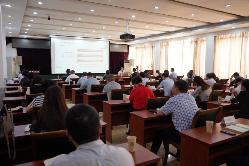 3月16日下午,学院党委书记林世全在科苑宾馆三楼大会议室通过“线上+线下”相结合的方式为全体干部教师作元宇宙专题讲座。学院领导、各部门负责人和二级学院院长在科苑宾馆三楼大会议室参加了讲座,其余干部教师在A1区教学楼参加了线上学习。讲座由党委副书记、院长伍小兵主持。