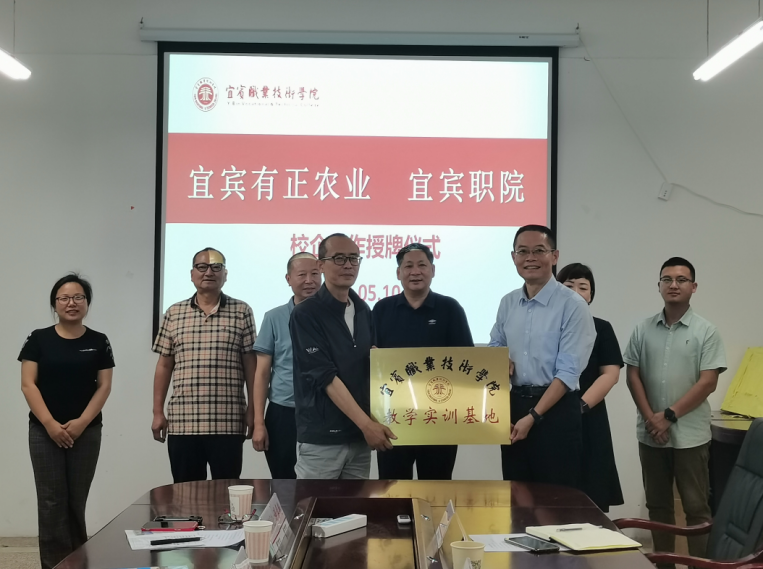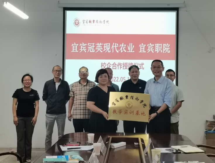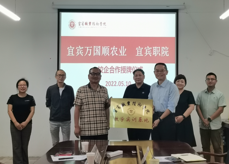 交流结束,举行了校企合作教学实训基地授牌仪式。由伍小兵逐一向来访的四家农业企业负责人授牌。