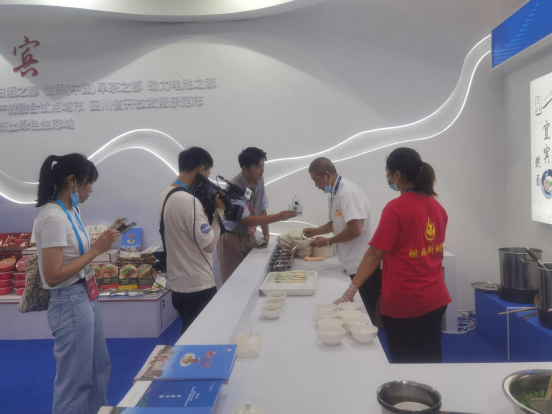 技状元宜宾燃面作为宜宾展区的第一个展位,一方面集中展示了我院研发的方便型、预制(冲泡)型、食堂型燃面产品;另一方面邀请学院客座教授曹祉清大师亲临现场,指导制作,把每一碗燃面系列产品做成精品,受到了与会领导、嘉宾的一致好评,成为了展会的一大亮点,宜宾电视台等媒体给予了直播和专题采访报道。