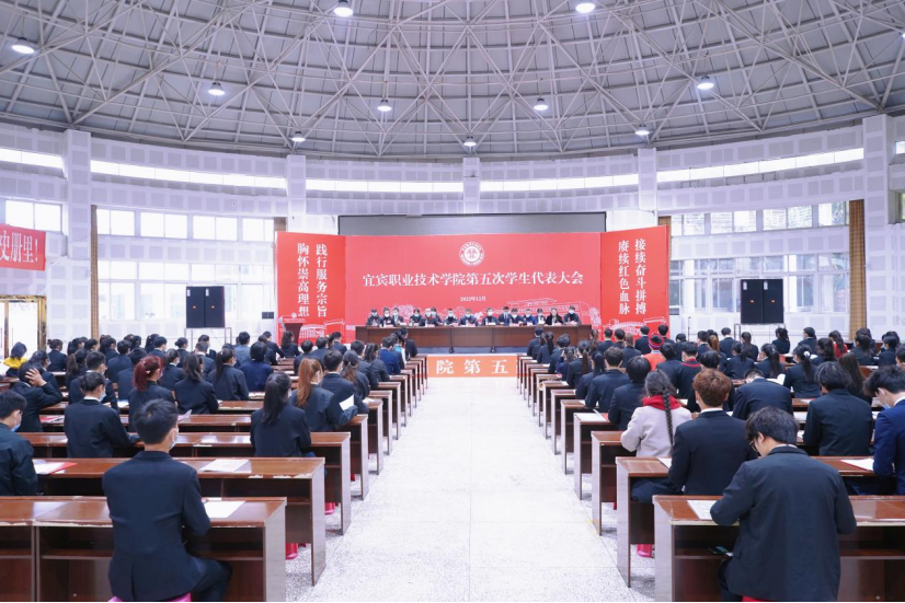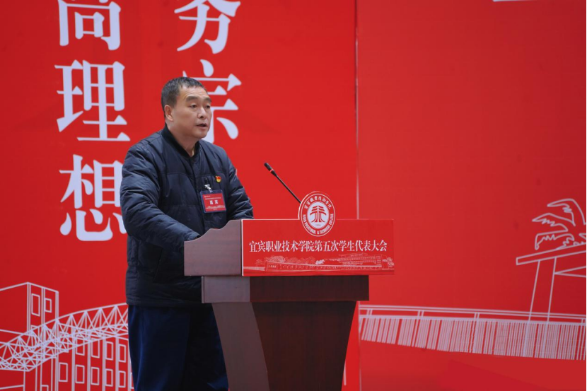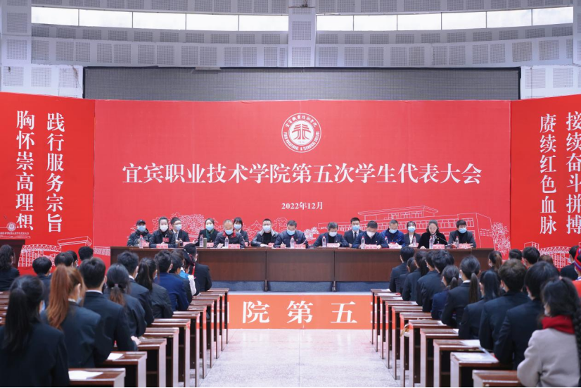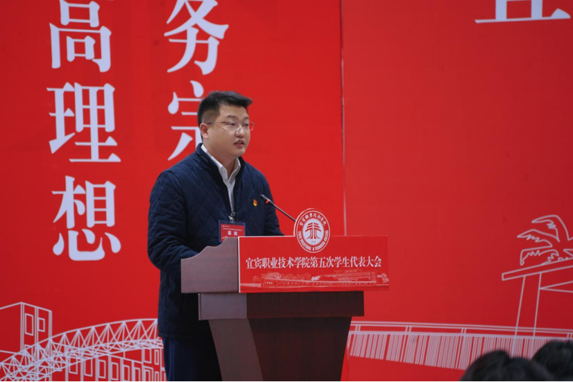康松艺同学代表宜宾职业技术学院学生会第四届主席团向大会作了题为《学习党的二十大精神、永远跟党走、奋进新征程,在全面建设社会主义现代化国家、全面推进中华民族伟大复兴的火热实践中贡献青春力量》的报告。大会还听取了《宜宾职业技术学院第四届学生会提案工作报告(草案)》,审议了《宜宾职业技术学院学生会章程修正案(草案)》。