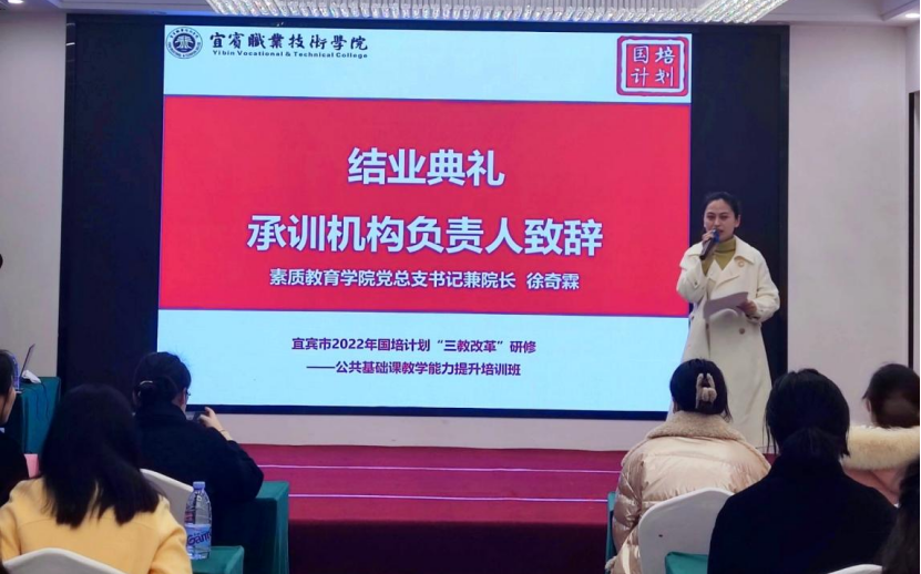 1月11日上午,由我院承办的宜宾市2022年国培计划“三教改革”研修——公共基础课教学能力提升培训班圆满落下帷幕。来自全市7所中职学校的39名一线教师参加了此次培训。