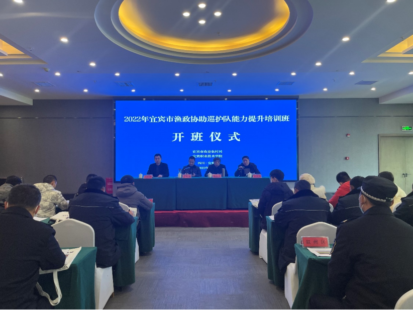 1月12日,由宜宾市农业农村局主办,宜宾职业技术学院承办的2022年宜宾市渔政协助巡护队能力提升培训班开班仪式在宜宾市佰鹭洲酒店举行。市农业农村局局长罗世俊、市水产渔业站站长陈永胜、学院副院长周黎军出席开班仪式,现代农业学院院长先元华主持开班仪式。