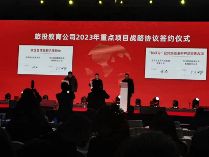 四川旅投教育投资有限责任公司是国有大型旅游旗舰型企业四川省旅投集团下属公司,其业务范围与学院文旅专业建设和人才培养高度吻合,是开展产教融合的绝佳组合。此前,经过校企双方积极对接和认真研究,在共建产业学院、合作开展宜宾燃面营销、共同开发思政文旅项目等方面达成了校企深度合作意向,并签订了战略合作协议。